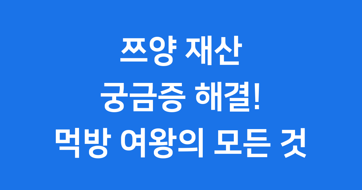 안녕하세요! 오늘은 모두가 궁금해하는 먹방 유튜버 쯔양 재산에 대해 이야기해 볼 거예요. 😊 쯔양님은 정말 어마어마한 양을 먹으면서도 늘 밝은 모습으로 많은 사랑을 받고 있죠.